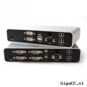 Dual-head DVI KVM extender die Dual DVI signaal verlengt inclusief keyboard, muis en bi-directioneel audio signaal. Beschikt over een switch functionaliteit waarmee een gebruiker kan schakelen tussen 2 aangesloten computers.