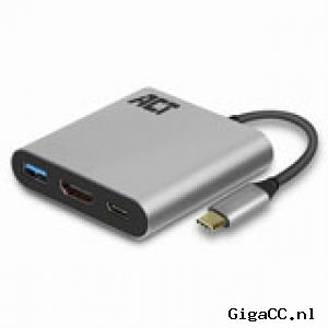 ACT USB-C multiport adapter voor 1 HDMI monitor, 1x USB-A, PD pass-through