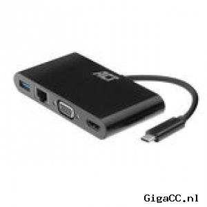 ACT USB-C dockingstation 4K, voor 1 HDMI of VGA monitor, ethernet, USB hub