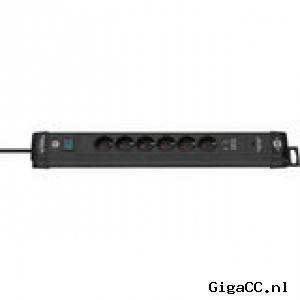 Brennenstuhl Premium-Line, stekkerdoos, 6 sockets, 3m, zwart, met schakelaar en 2x USB A 1x USB C