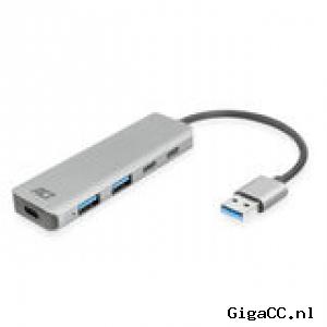 De ACT AC6125 USB hub heeft een stevig aluminium ontwerp die door het lichte gewicht eenvoudig in uw laptoptas past. De hub voegt vier extra USB poorten toe aan uw laptop of computer voor het aansluiten van randapparatuur met een USB-A en USB-C connector.